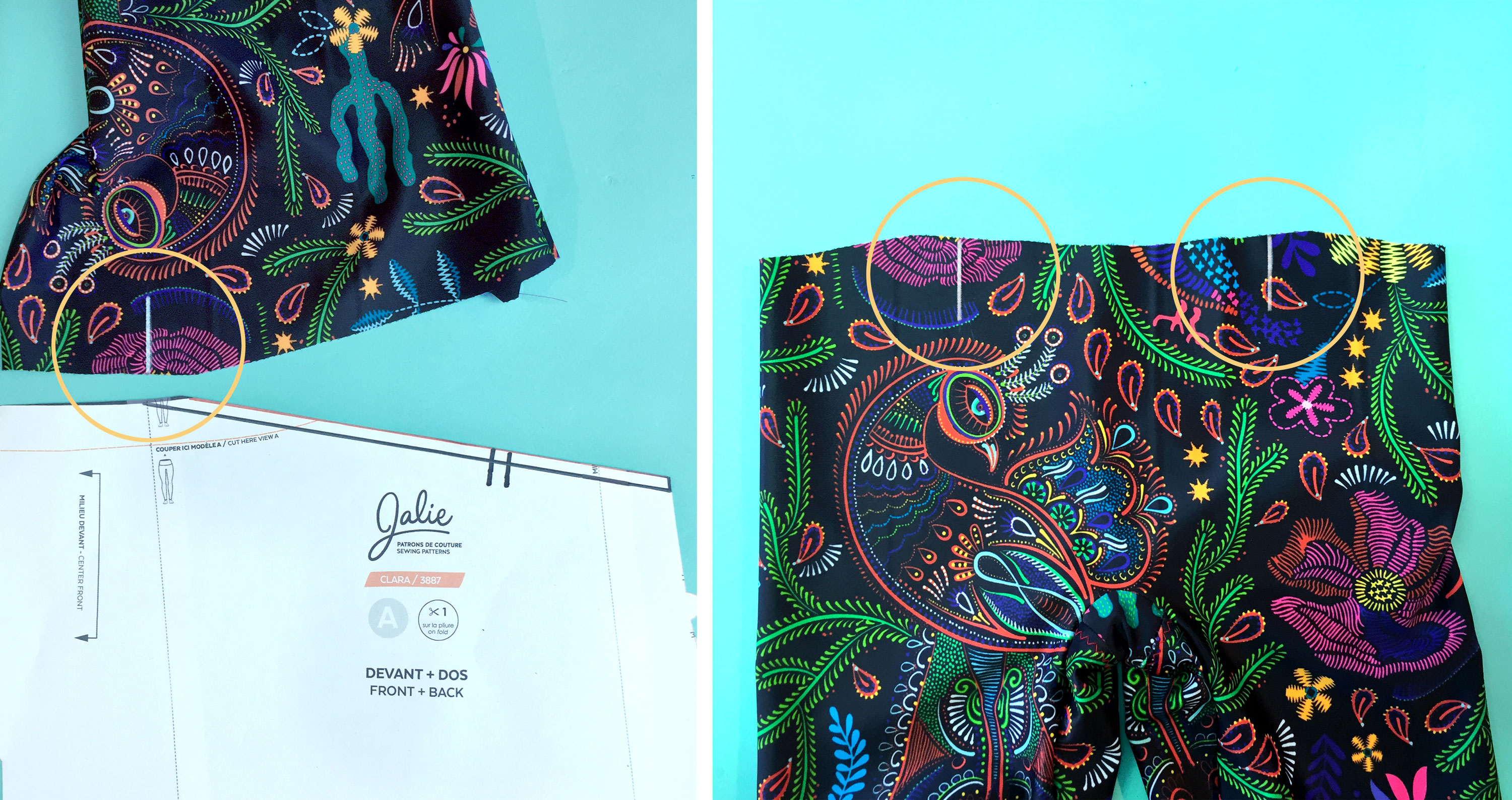 Before cutting your fabric, add a double notch on the yoke and main piece, at about 1/3 of the seam. This will help you keep everything nice and straight when you assemble the garment.