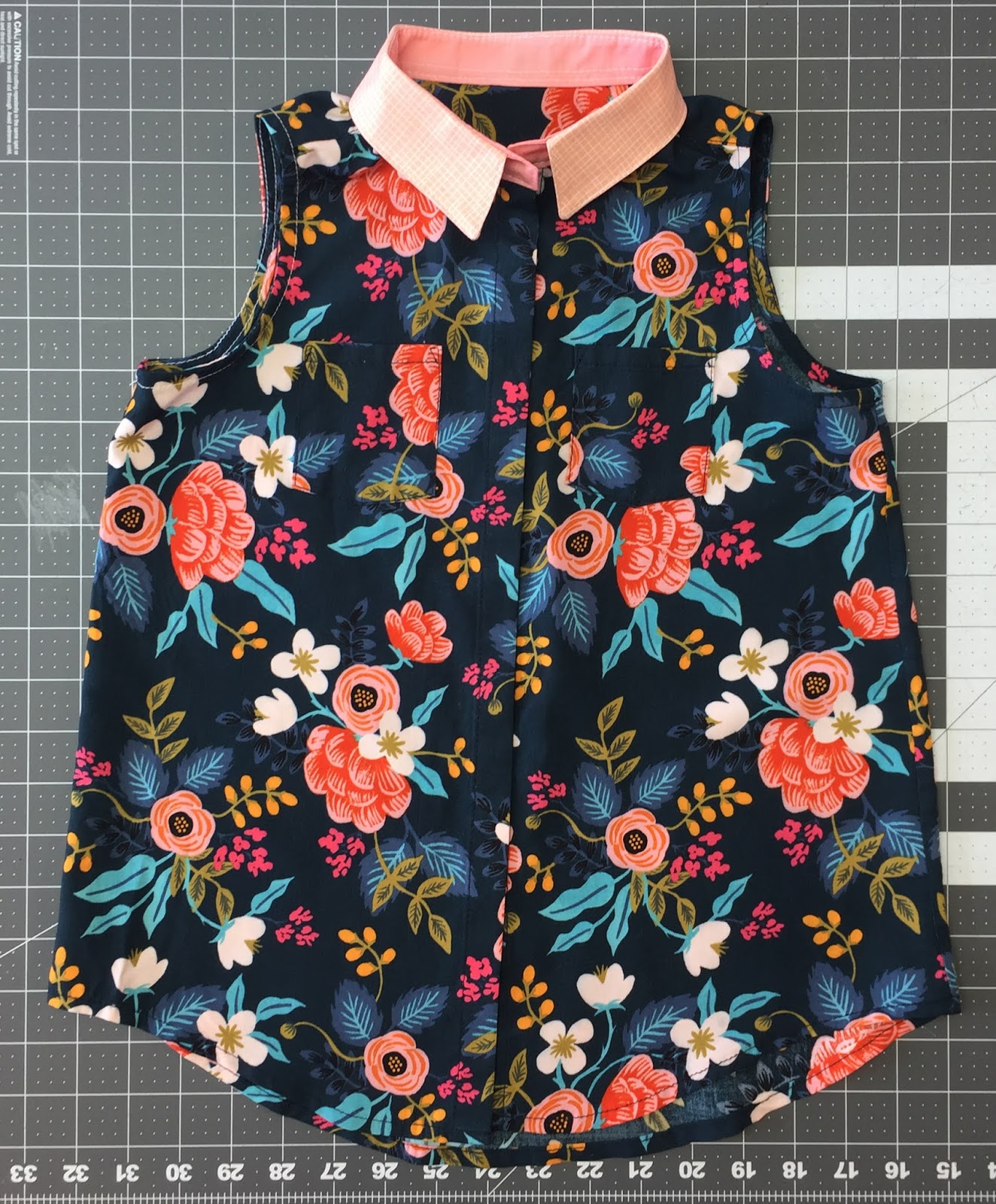 You're done! Your shirt has a collar :) Remove the basting stitch (extra stitch visible inside the collar stand) if you want. We left it on the photo below so you can see where all seams are located / visible when you finish sewing: