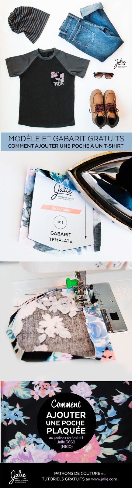 Ajouter une poche en soi n'est pas sorcier, mais coudre une poche symétrique et bien droite sur le vêtement peut être un défi lorsqu'on ne s'y prend pas correctement. Suivez les étapes et utilisez notre gabarit et vous serez très fière du résultat!
