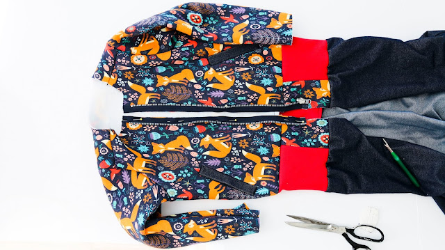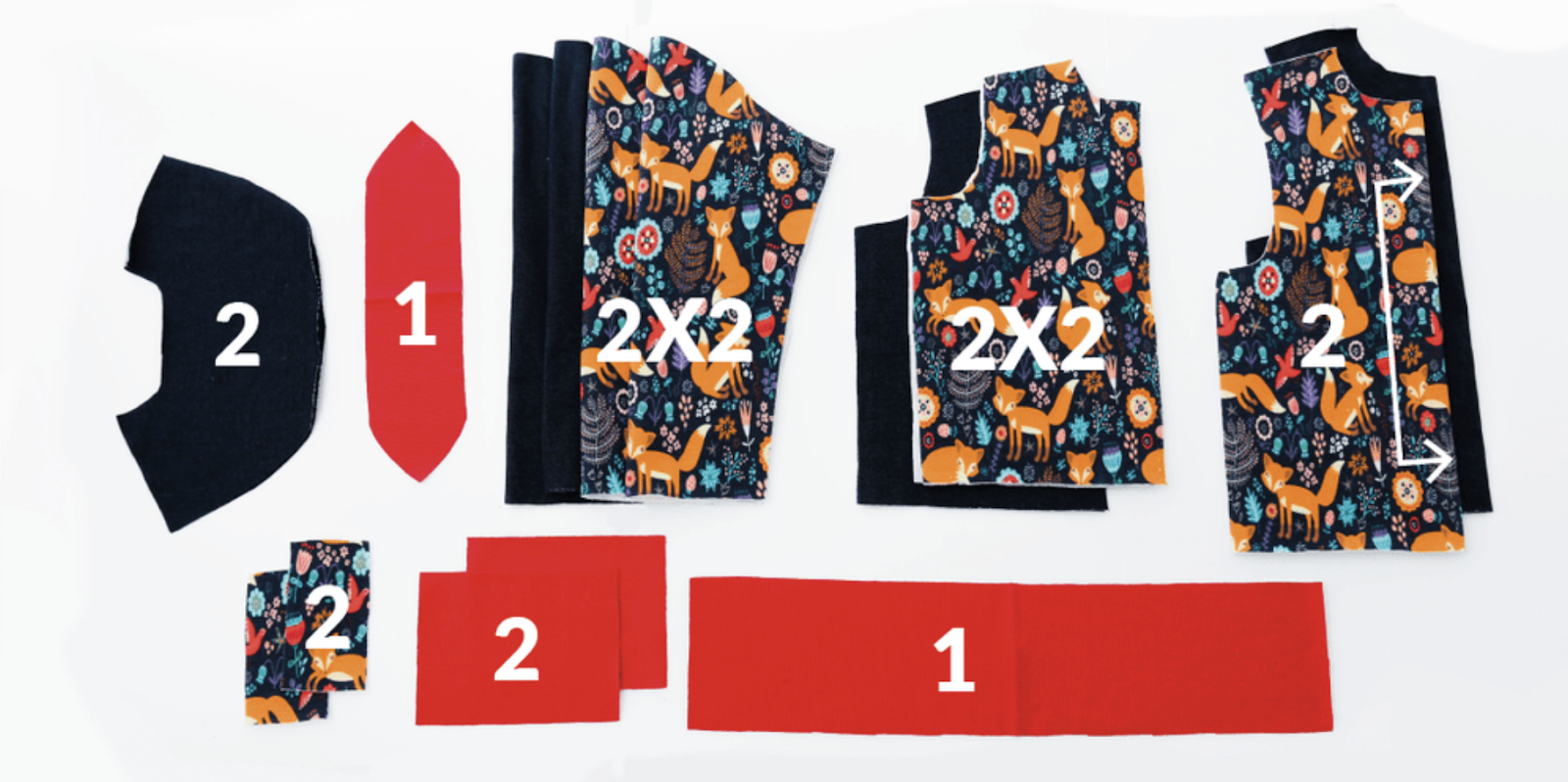 - Tissu principal: Tel qu'indiqué dans les instructions du patron (blouson + bandes des poches)