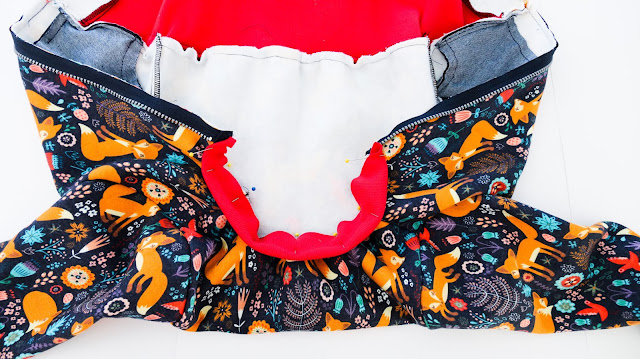 Suivez les étapes 1 à 16 qui incluent les poches et l’assemblage du corsage pour le tissu extérieur et sa doublure. IMPORTANT: Il faut laisser une partie du fond de poche non cousu pour retourner le vêtement à la toute fin:![]() |