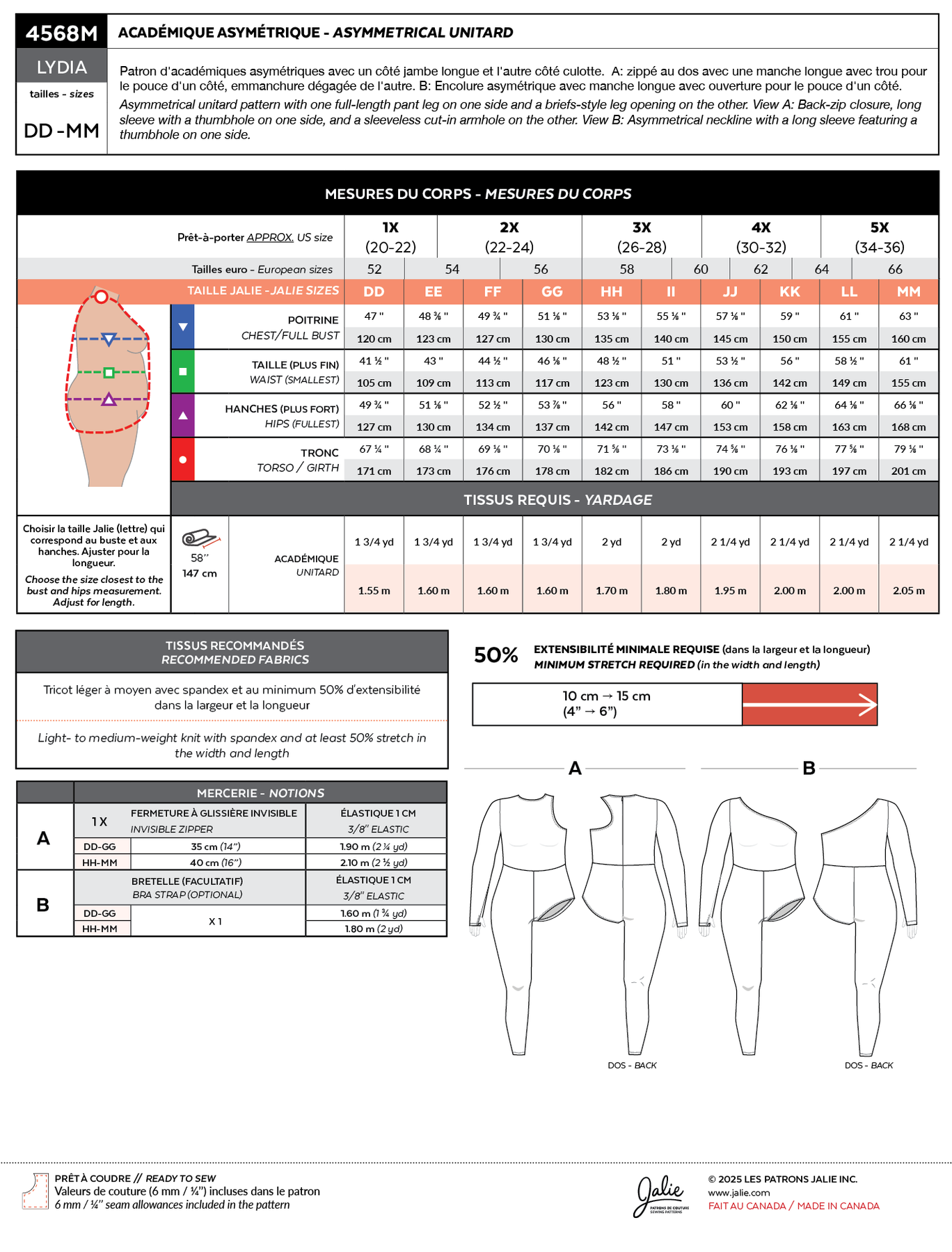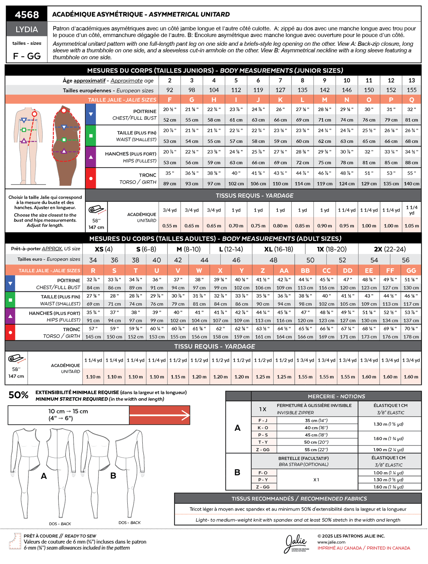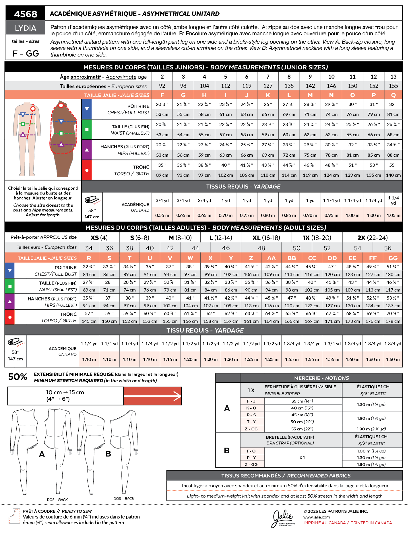 Sizing chart / Yardage info