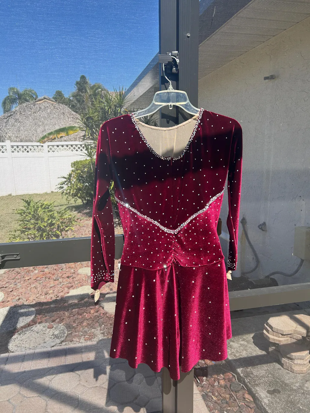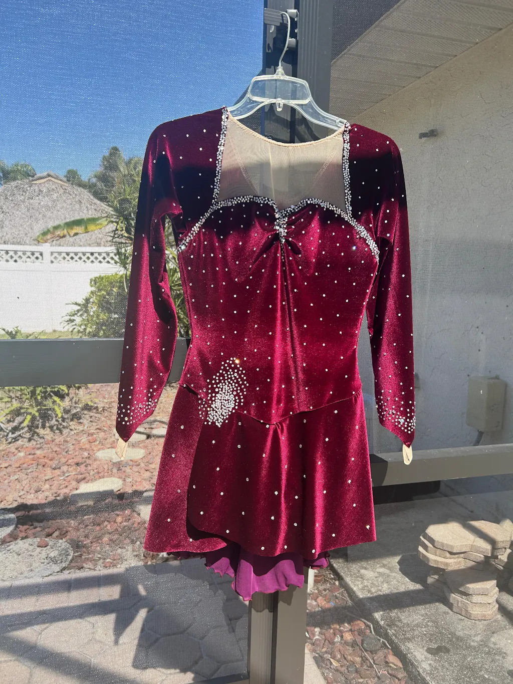 I made 5 versions of this dress for my skater between the ages of 11 and 16. My kid has a very long body, which made her very hard to fit in a ready-made dress, and the pattern was pretty easy to adjust to make her look great on the ice. I used stretch velvet for the base of the dress, which was easy to work with, and matching mesh from Spandex House in NYC. I put the extra length into the skirt and under part of the dress, raising the waist a little bit. I bought too much fabric each time - extra 1/2 yard? - so that I could cut again if I didn't get it right the first time. It is a perfect dress for adapting into something new. I blinged it across the upper chest and shoulders in one version, around the skirt and neck in a different one.