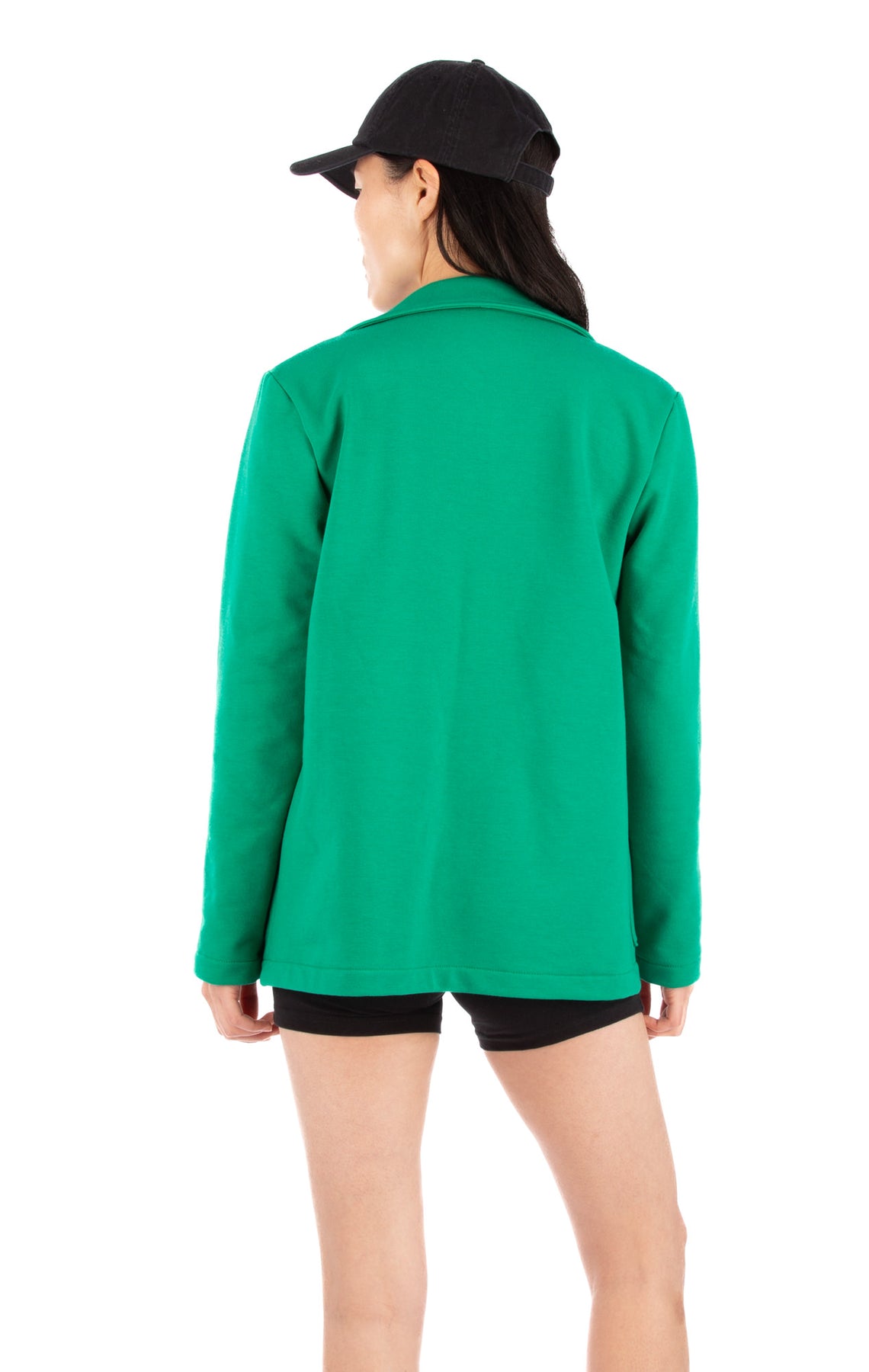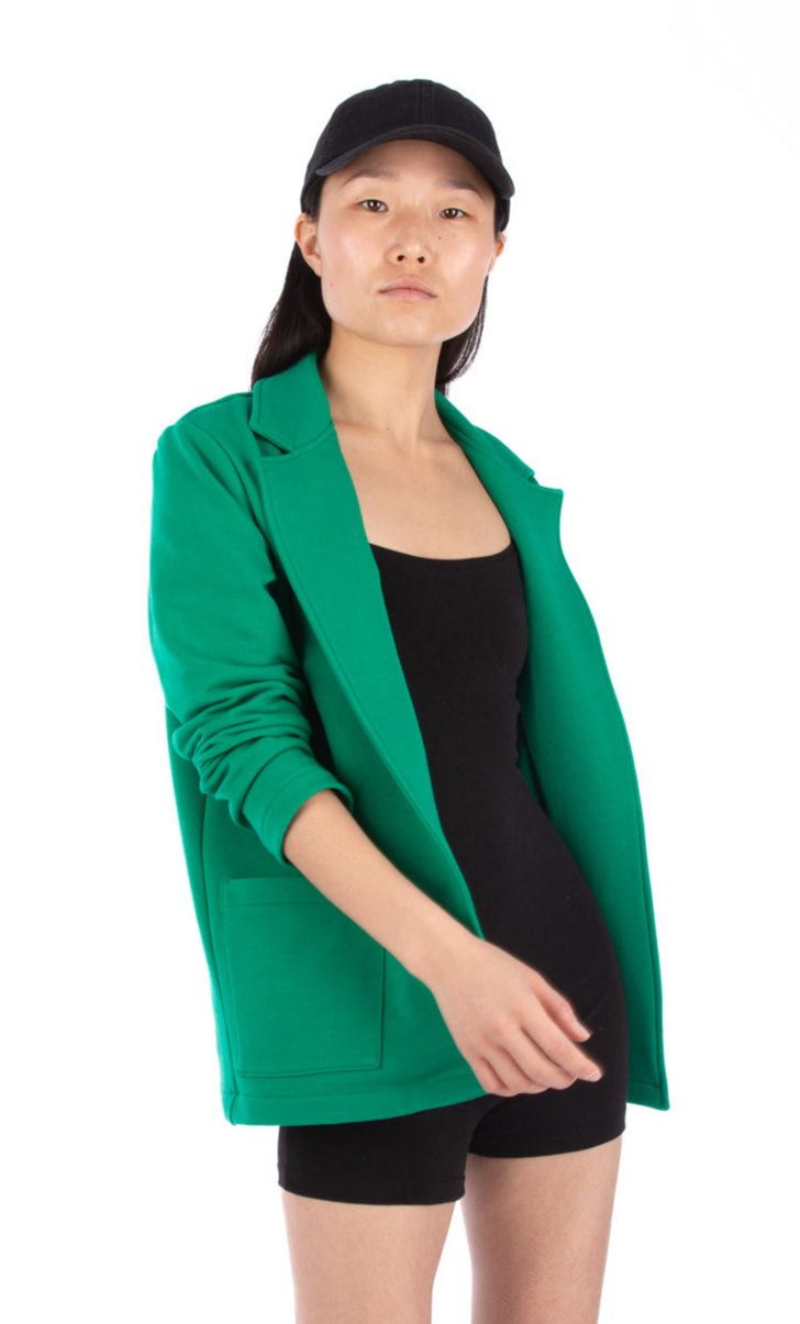 Misheel (size S) wears her blazer over a Camille unitard.