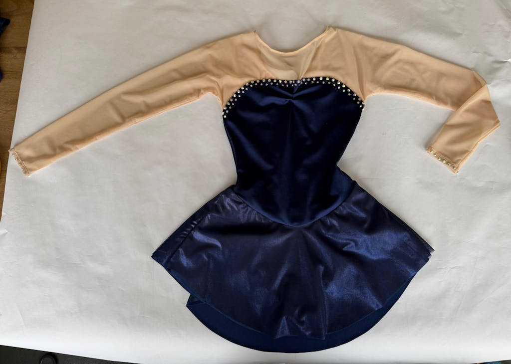 Leotard (A) with long sleeve, V-waist and optional inset for a V-neck illusion that totally transforms this staple design. Add the circle skirt for a skating dress (B) that is quick and easy to sew. It is the perfect project if you are tackline skatewear sewing for the first time!